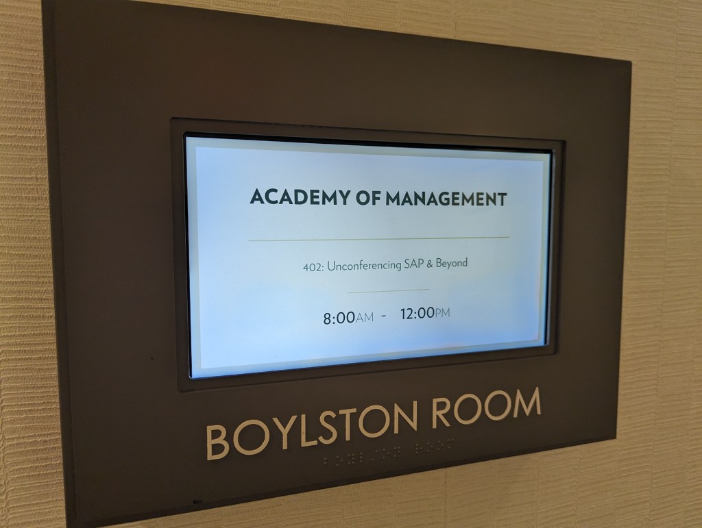 Given the positive feedback received by the participants, I expect this format to become a regular part of the SAP program at the AoM Annual Meetings. Please check out some photos of the unconferencing session below: