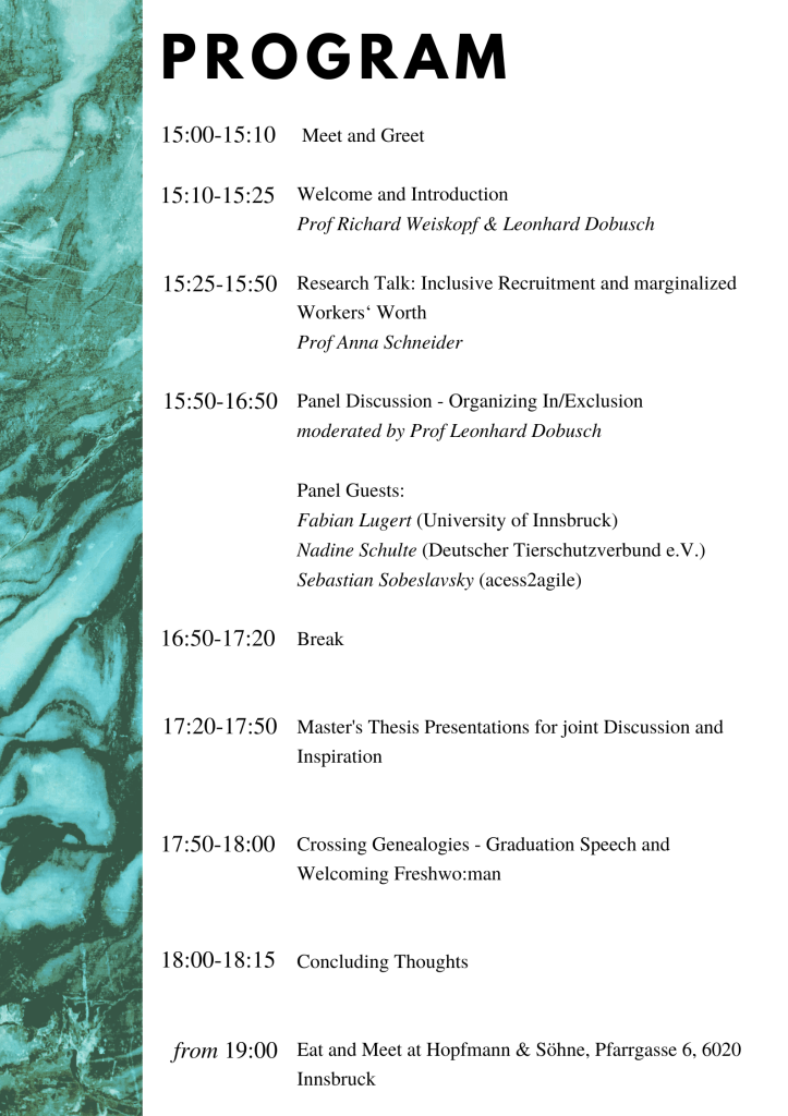 • Social get-together: Hopfmann & Söhne, Pfarrgasse 6, 6020 Innsbruck, starting at 7 p.m.